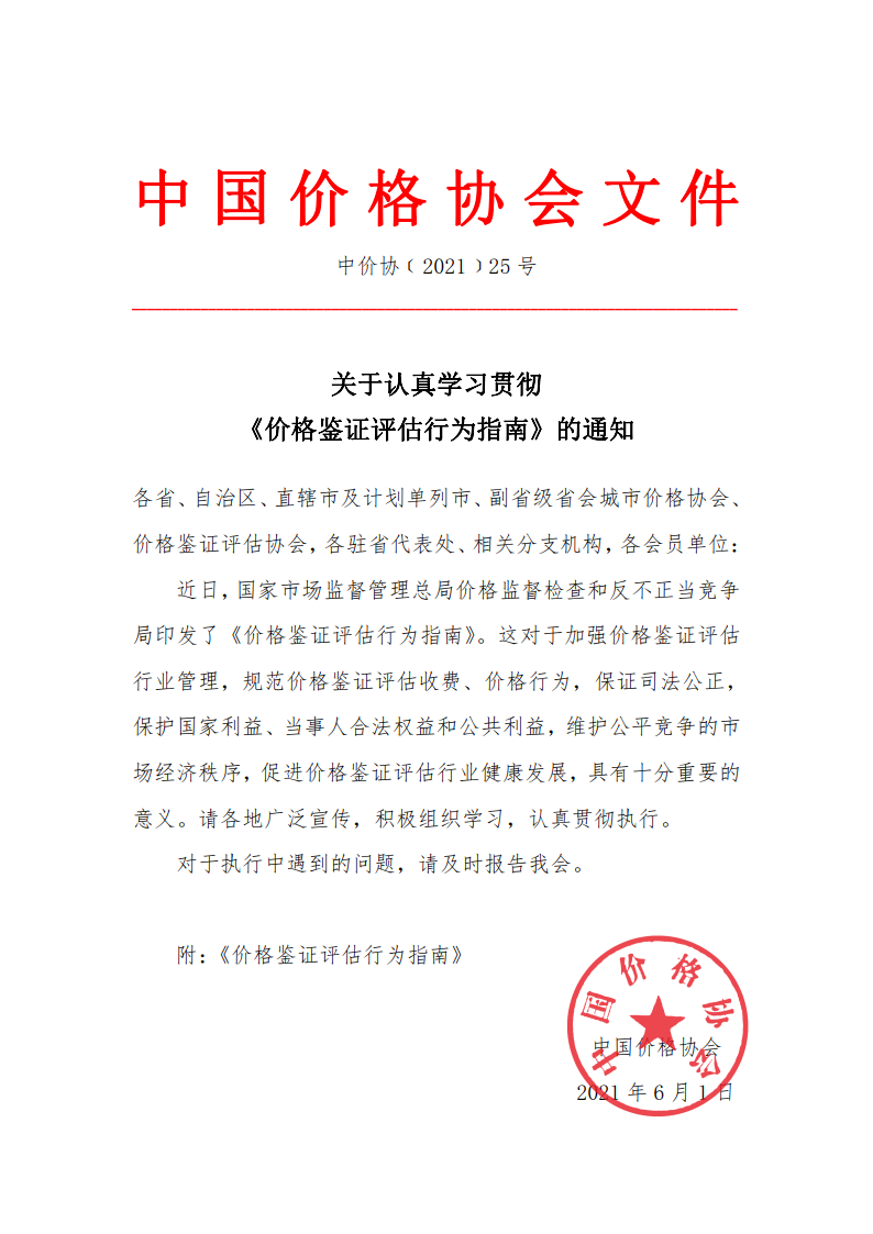 關于認真學習貫徹 《價格鑒證評估行為指南》的通知